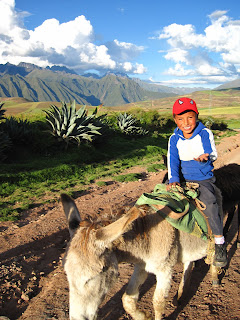 Then each leg of our trip back to Cusco was a language barrier. First, the cab we took from Moray to Maras... it took our friend Kate blowing a few kisses to the driver to get where we wanted to go for the price we wanted to pay. Then we went for a ¨1 km¨ walk that took like an hour passing some scary bulls and some beautiful scenery. Then we hopped on a bus back to Cusco- always an adventure. Kelsey and I were the only ones allowed to sit in the front cab with the driver and conductor, so we were opening doors and getting fondled by every person that got on and off the bus. However, this ride was free of foul smells and Peruvians sitting on top of us which counts as a total victory. I would say that my Spanish is improving enough to know that this kid wanted a tip for this picture, but not enough to be able to tell a cab driver that screwed us what we really thought of him.